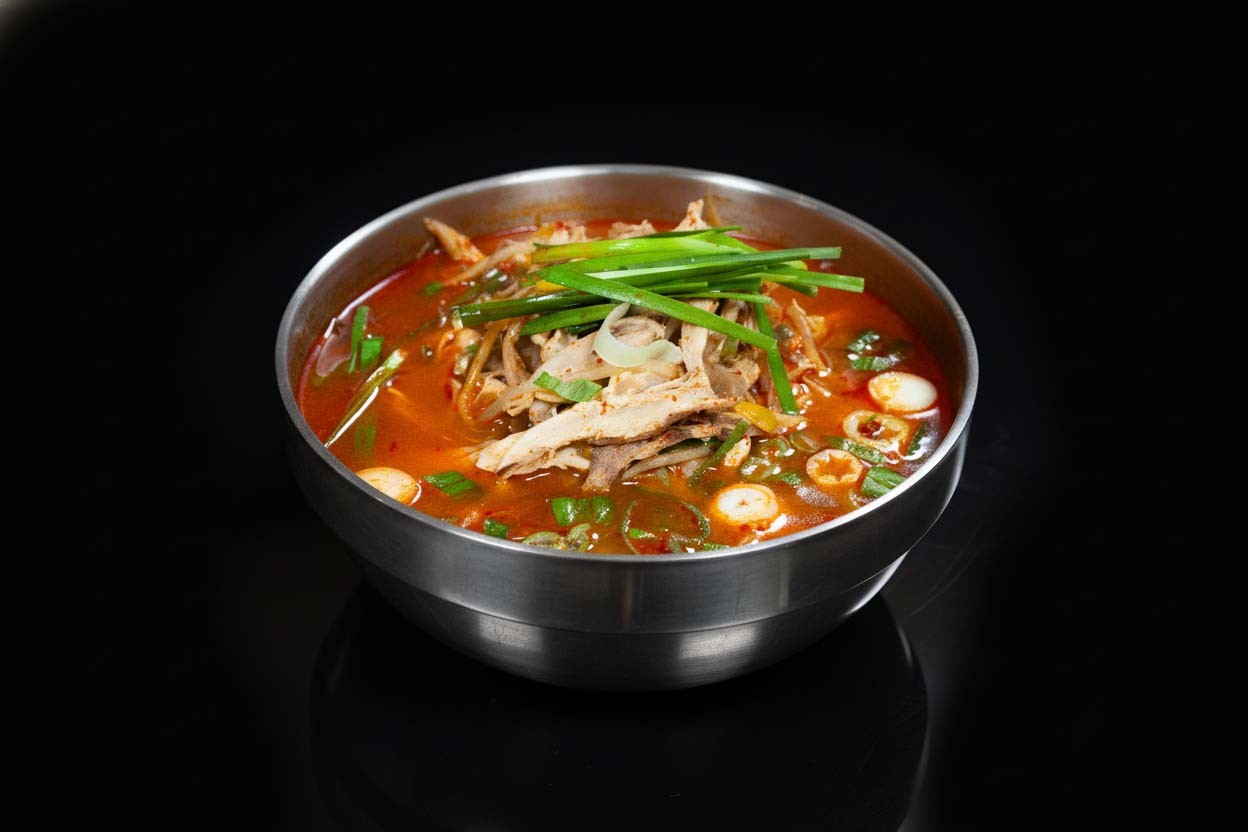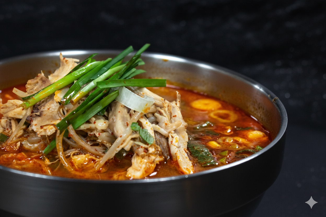 얼큰한 국물과 닭고기가 들어간 메뉴로 한 끼 식사를 든든하게 해결하기 좋아 아침이나 점심 식사 메뉴로 많이 선택됩니다.